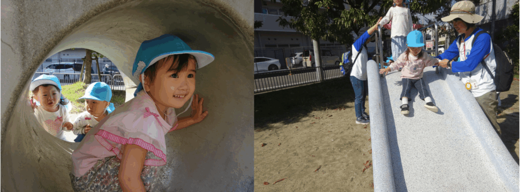 公園に着いてからは、滑り台で遊んだり、難しい遊具に挑戦したりして楽しかったね🎵
