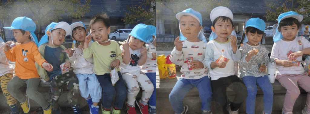 たくさん遊んだ後は、おうちからもってきたお菓子を食べました🍪🍩