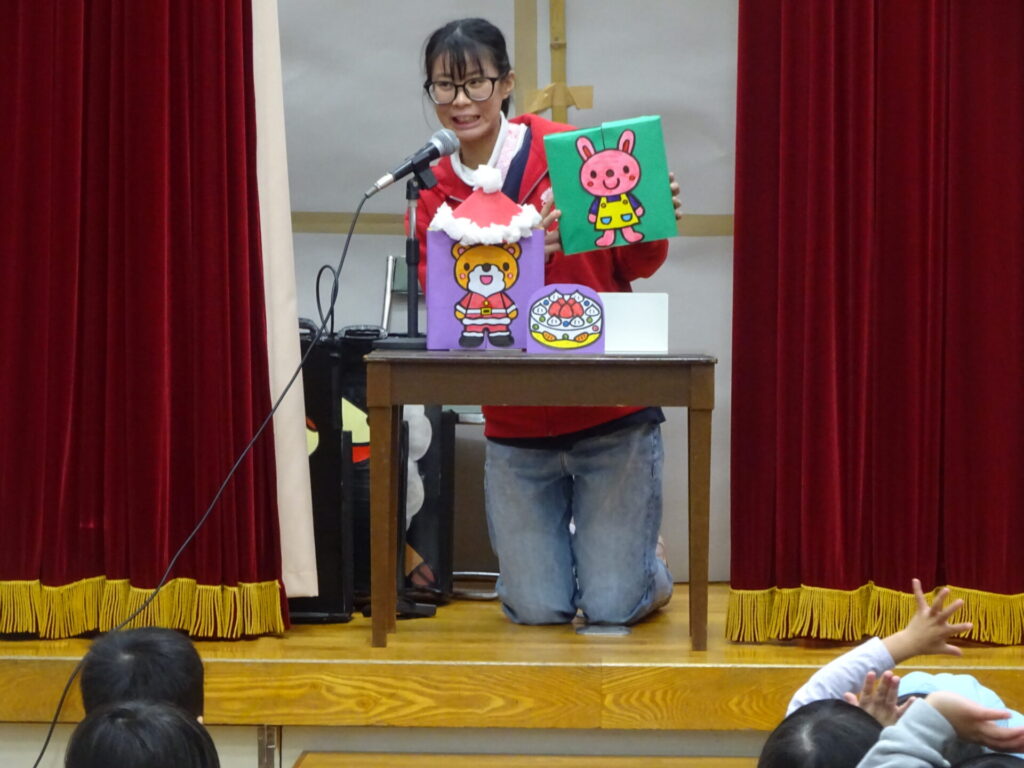 先生からのプレゼントは、くまさんがサンタクロース🎅に変身するお話をしましたよ。