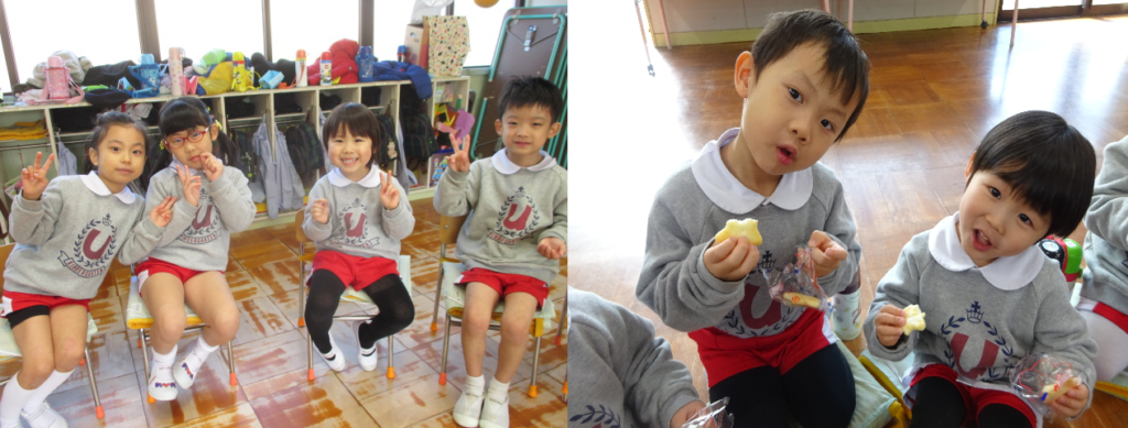 豆まきの後はおせんべいを食べて、