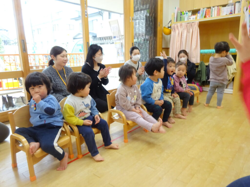初めは、朝の歌とお名前呼び、「どこでしょう」を歌いましたよ🎵