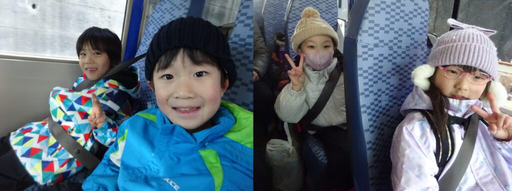 幼稚園へ帰るバスの中では、「楽しかったね!」や「雪があってよかった✨!」