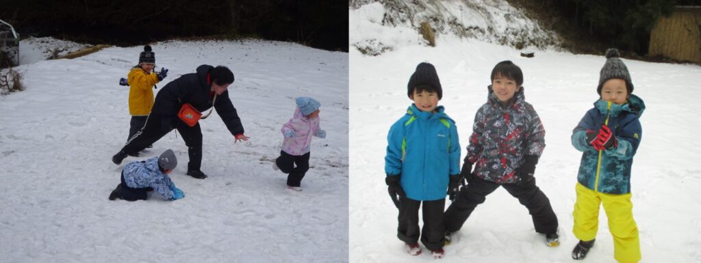 雪の上を滑ったり雪合戦をしたり、つららを取ってみたり、