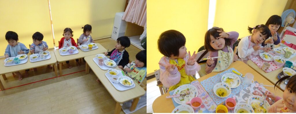 お楽しみの給食ではかわいいおひなさまのケーキにみんな大喜びでした🥰