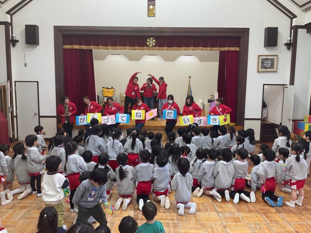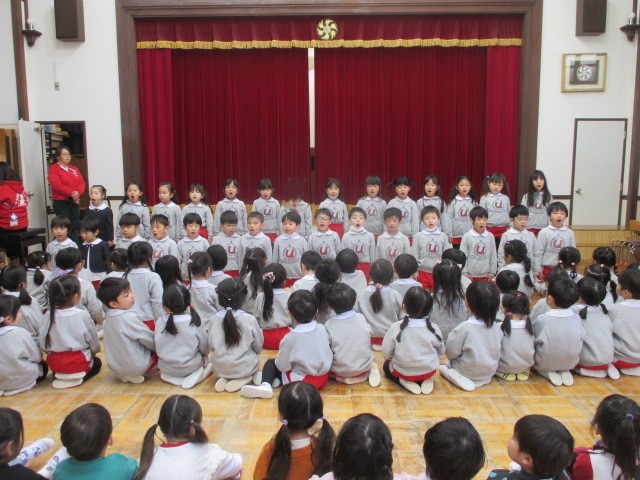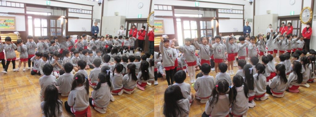 まずは在園児のお友だちから、年長さんに歌のプレゼントをしました🎶