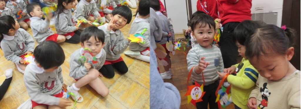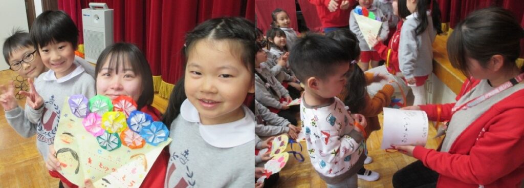 年長組さんからはお返しとして、歌とすてきな折り紙のお花のプレゼントをくれましたよ🏵️💖
