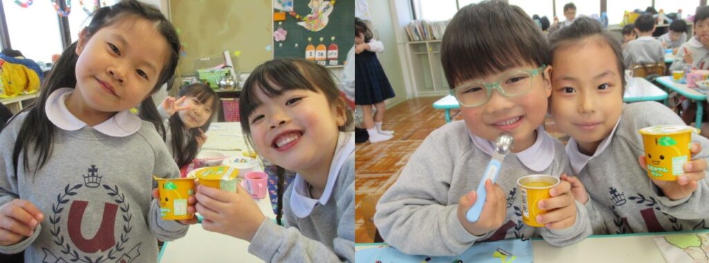 お昼ご飯にはデザートでPTAさんからみかん🍊ゼリーをいただきましたよ💓