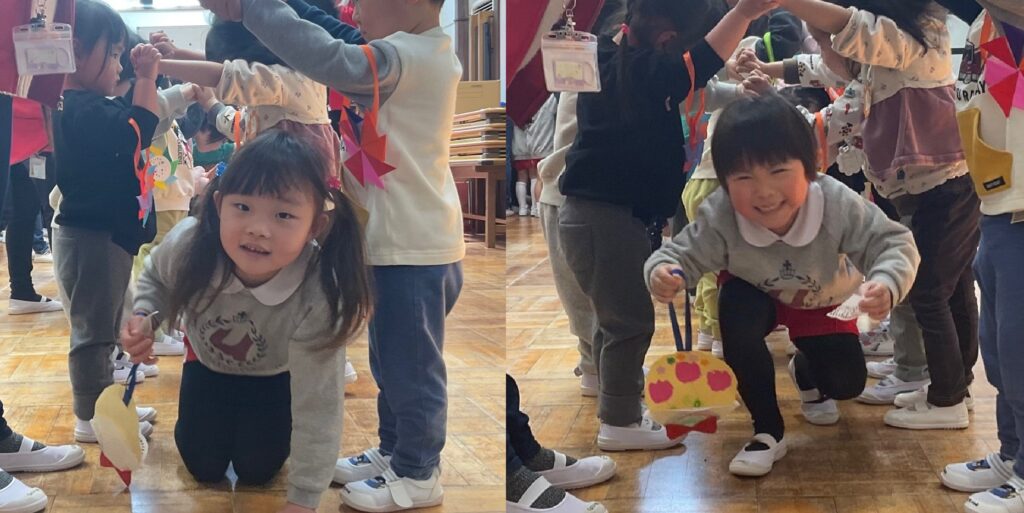 みんなでトンネルを作って、年長さんをお出迎え😝🎶