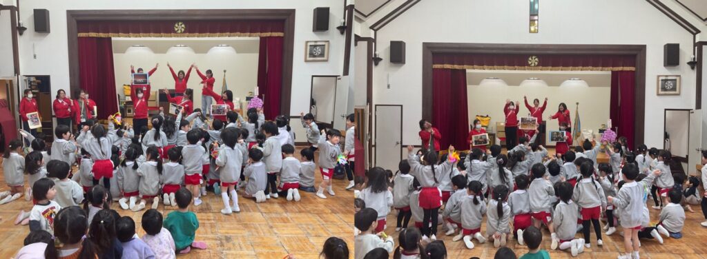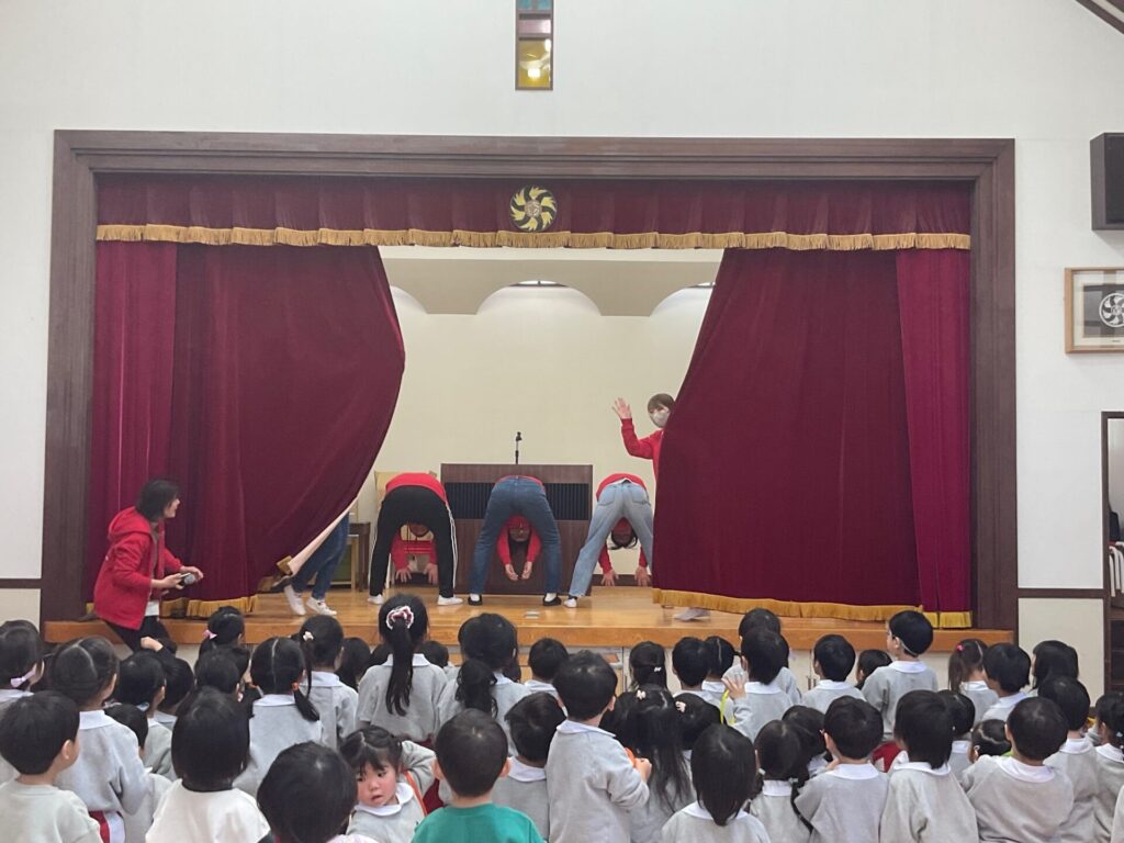 年長組の一年間の中で取り組んだ行事を先生たちがジェスチャーで披露!