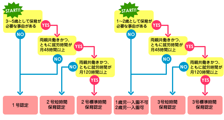 | 認定区分 | お子様の年齢 | 保育を必要とする事由に該当※1 | お預かり時間 |
